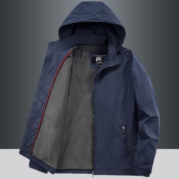 秋冬休閑加絨夾克男加厚上衣寬松戶外沖鋒夾克厚款防風運動外套