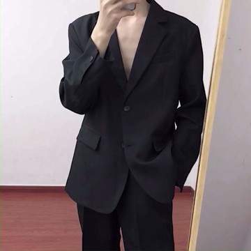韓系ins輕熟鹽系西裝男藝術生酷帥風格穿搭藍色外套垂墜西服套裝