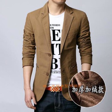 冬裝新款韓版男裝加厚加絨休閑西服大碼外套潮修身單排扣小西裝男