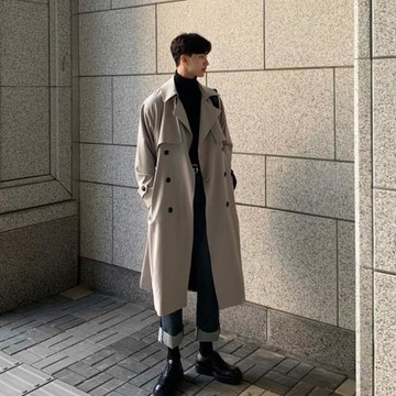 戰壕英倫風衣男中長款雙排扣韓版潮流寬松日系休閑外套男秋季衣服