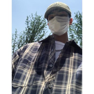 夏季格子長袖襯衫男士潮流ins帥氣寬松休閑翻領襯衣夏季薄款外套