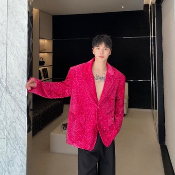 網紅明星同款閃閃亮片西服男潮牌炸街外套嘻哈夜店蹦迪歌手表演服