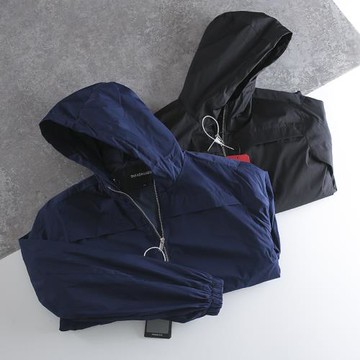 歐美單女士春秋寬松大碼外套連帽純色防水oversize夾克風衣