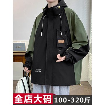 沖鋒衣外套男防風防水連帽登山服夾克2024春秋新款寬松工裝上衣潮