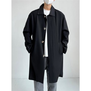 簡約翻領拉克蘭袖長版綁帶大衣