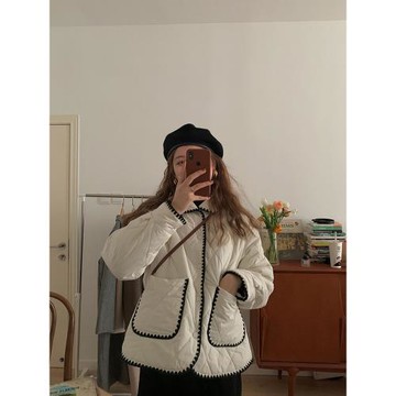 米白色短款輕薄絎縫羽絨服女冬季2025新款韓版小個子小款薄款外套