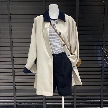 配色線條大口袋純棉風衣外套(兩色)