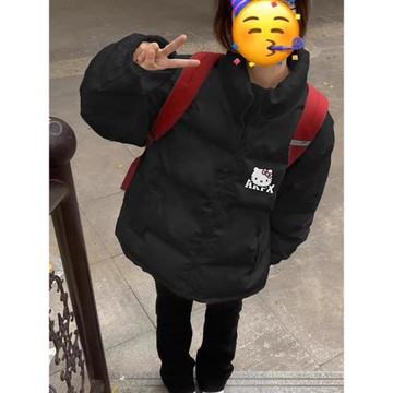 hellokitty棉服外套女大童冬季2025新款初中高中學生加厚黑色棉襖