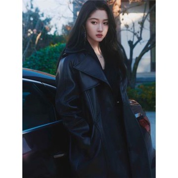 關曉彤同款 Nana Jacqueline 2SAW 寬松大廓形皮中長風衣外套女士