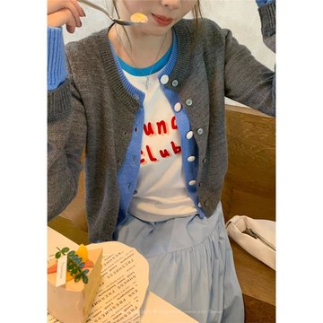 嗆口泡菜設計感小眾撞色羊毛針織開衫女秋冬新款寬松韓版毛衣外套