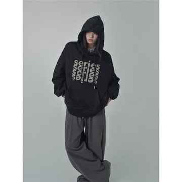 SIXI四喜家春季 多層字母堆疊連帽衛衣女寬松運動風休閑套頭外套