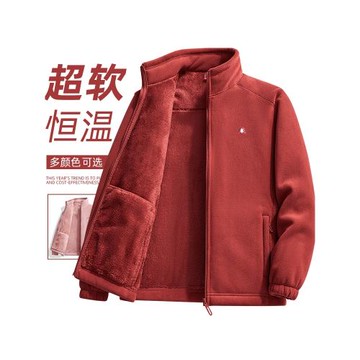 中老年加絨加厚外套冬季男士開衫立領夾克羊羔絨男裝羊羔絨保暖衣