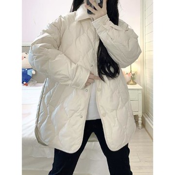 點我下載冬季新款羽絨服女中長款輕薄襯衫領翻領時尚百搭2024寬松休閑外套