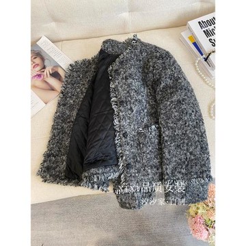 灰色小香風外套女2025秋冬新款法式復古夾棉加厚圈圈毛羊羔毛上衣