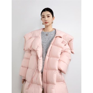 YIMU 綿綿云朵 泡芙鵝絨羽絨服女冬季新款加厚保暖過膝面包服外套