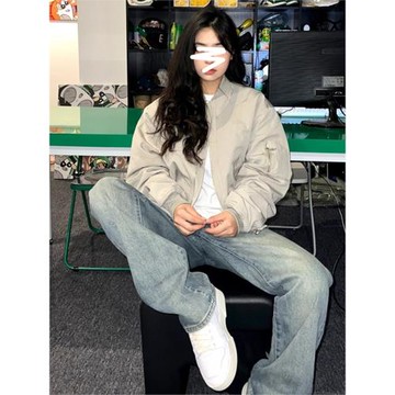 點我下載棒球服外套女秋季款2024年美式復古vintage飛行夾克短款早秋上衣