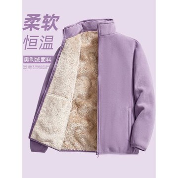 柔軟顯瘦奧利絨外套女秋冬款加絨加厚搖粒絨衛衣男立領抓絨衣內膽