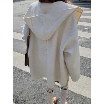 韓系雙面呢子大衣女2025秋冬新品短款連帽毛呢外套寬松休閑小個子