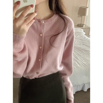 秋冬網紅粉色羊毛針織開衫寬松厚慵懶學生T恤休閑軟毛衣少女外套