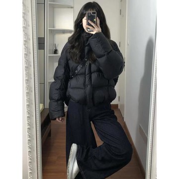 黑色羽絨服女冬季2025新款設計感小眾短款立領反季面包服外套女款