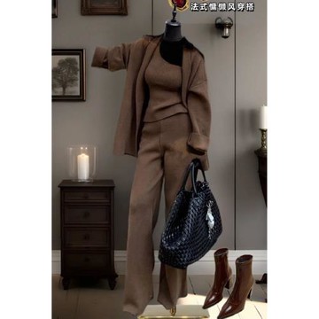 秋冬一整套穿搭女新款韓系慵懶風復古氣質寬松背心外套褲子三件套