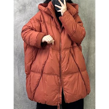 白鴨連帽絨羽絨服歐版大碼2024冬裝新款寬松加厚女中長款保暖外套
