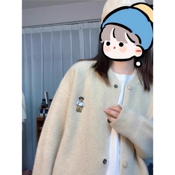 Wassupkates學院風小熊針織開衫女外套女春秋季薄款寬松溫柔毛衣