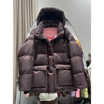 2024冬裝新款設計感寬松韓版時尚連帽短款羽絨服女百搭白鴨絨外套