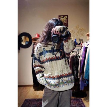 (免運)古著vintage小眾費爾島毛衣慵懶風百搭氛圍感時尚百搭減齡上衣冬