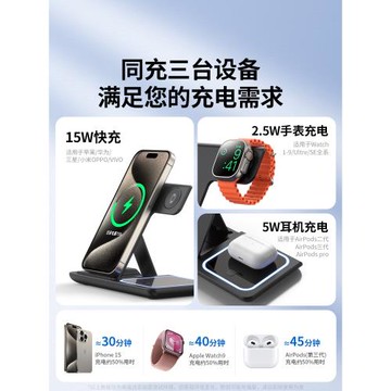 三合一無線充電器applewatch手表iwatch充電座蘋果15快充支架適用iphone16磁吸magsafe底座airpods藍牙耳機14