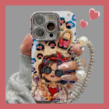 卡斐爾 適用油畫豹紋發財富婆女孩手鏈蘋果17pro max手機殼iPhone16新款15硅膠14女plus鏡框支架13防摔12藍光