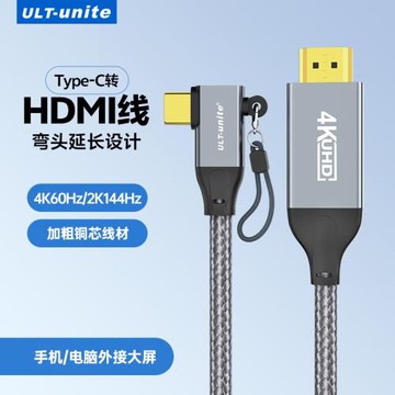 優籟特typec轉hdmi高清線側彎頭手機平板電腦同屏電視顯示器連接投影儀4K適用iPad pro蘋果筆記本MacBook華為