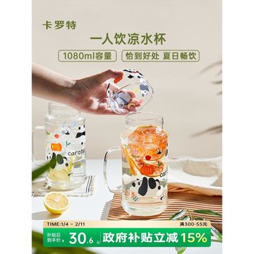 卡羅特玻璃水杯女生高硼硅耐高溫冷水壺大容量泡茶辦公室家用杯子