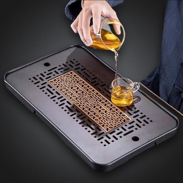 草木祠輕奢高檔亞克力茶盤方形鏤空中式家用簡約茶托盤茶臺干泡盤