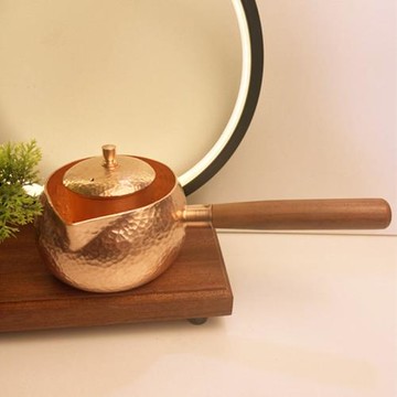 厚純手工紫銅錘紋側把茶壺燒煮罐罐茶水壺沏泡茶壺帶過濾木把銅壺