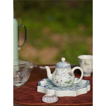 小雅瓷器家 卓君斗彩蝶戀花描金茶壺 主人杯 思亭壺