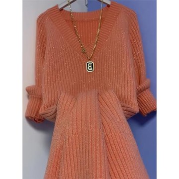 歐貨重磅早秋新款女裝2025高級感休閑桔紅色針織寬松中長款毛衣潮