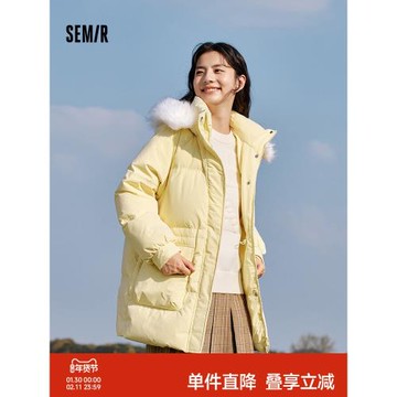 森馬羽絨服女中長款收腰寬松毛領連帽2023冬季新款防風防水厚外套