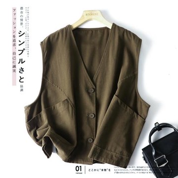 撤柜奧特萊斯清倉撿漏女裝復古文藝寬松坎肩純棉工裝馬甲開衫外套