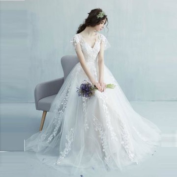 法式輕婚紗禮服2026新款顯瘦遮肉齊地新娘結婚迎賓紗森系V領超仙
