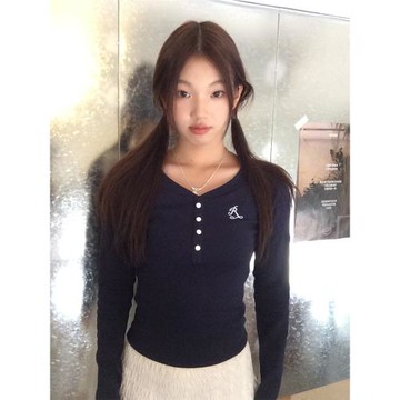 9th street 褶皺小翻領長袖T|修身純欲風辣妹打底上衣 (預購)