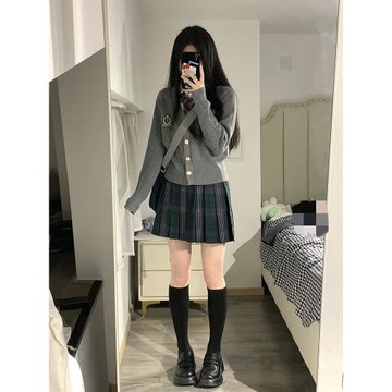 東京歲時記jk毛衣秋季校供感學院風慵懶風灰色針織開衫女英倫小姐