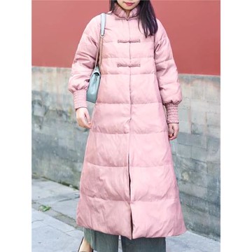 點我下載2973大吉立領繡花羽絨服長款保暖上衣外套女寬松直筒白鴨絨薄羽絨