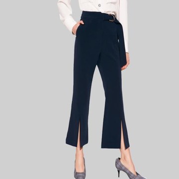 ★【喜芝梅】優雅前衩美感褲腳透紗長褲(黑色;M-2L) 223250234