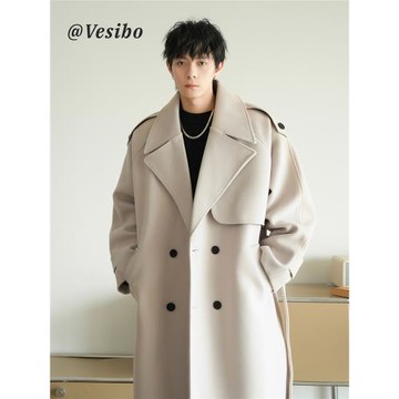 (免運)韓系中長款毛呢大衣男冬季重磅潮牌情侶外套vibe高街休閑寬松上衣