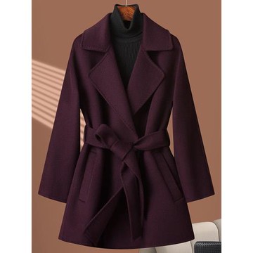 (免運)小個子雙面羊絨大衣女中長款2025年冬季新款車厘子紅高端毛呢外套
