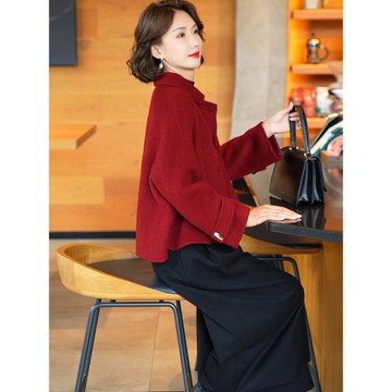 安可拉紅雙面羊絨大衣女中長款修身顯瘦2025秋冬新款羊毛呢外套