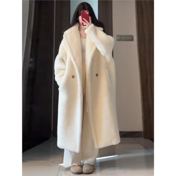 澳毛廓形雙面呢外套慵懶寬松氣質羊毛嬰駝絨加厚中長款大衣白月光