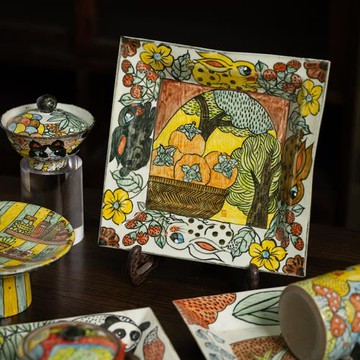 唯瓷婉欽手作柿柿如意兔子壺承創意茶具陶瓷杯青花蓋碗五彩貓盤