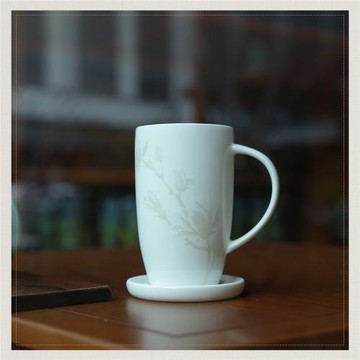瑪戈隆特白玉蘭骨瓷希爾頓蓋杯馬克杯辦公室水杯下午茶創意茶杯